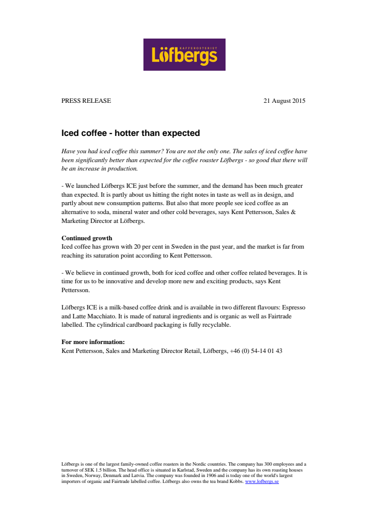 Have you had iced coffee this summer? You are not the only one. The sales of iced coffee have been significantly better than expected for the coffee roaster Löfbergs - so good that there will be an increase in production.